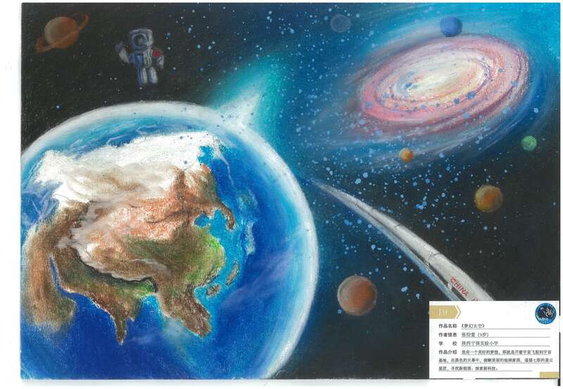 陕西宁强实验小学张怡萱的绘画作品《梦幻太空》,1月21日除夕当天在中国空间站第二届“天宫画展”亮相。中国载人航天工程新闻宣传办公室供图