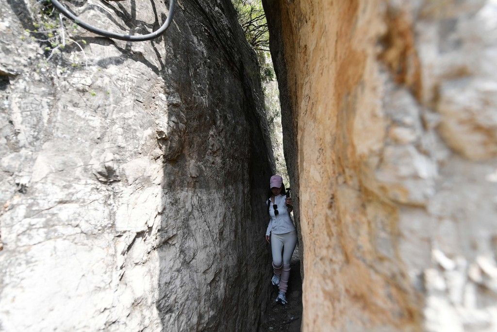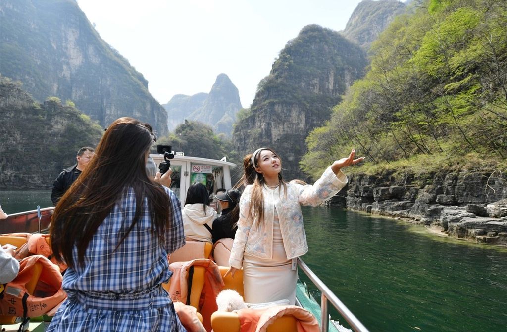 2025年4月26日,北京,游客在龙庆峡景区游览。