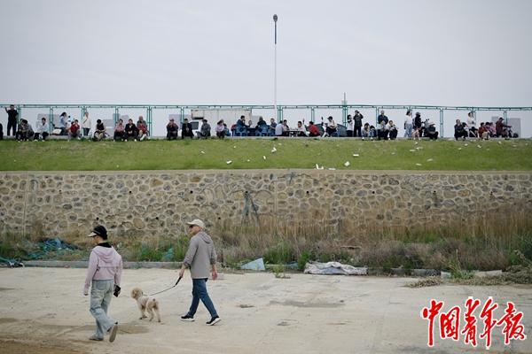 第二天,在场外的高地上,围观人群更庞大了。有人带着板凳、小桌、望远镜,有人一边打牌、喝酒,一边听演唱会。