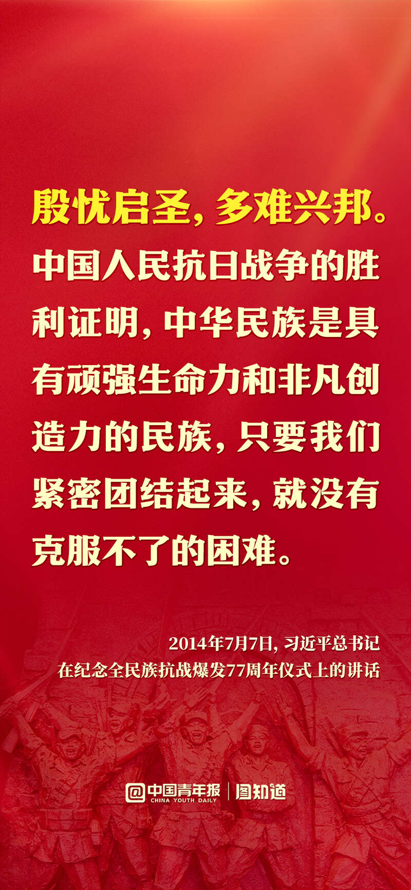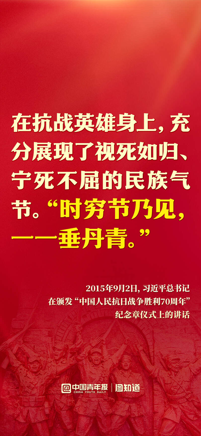 “殷忧启圣,多难兴邦”“时穷节乃见,一一垂丹青”……习近平总书记曾多次引用古文成语,点明抗战精神的要义。今天,让我们重温这些话语,汲取奋进力量。