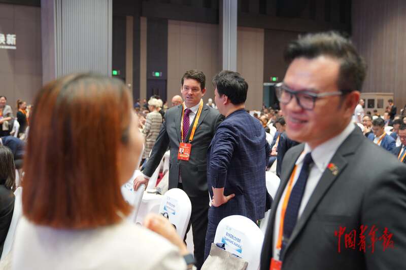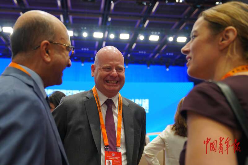 9月10日,北京首钢园,2025年服贸会在北京盛大开幕。开幕式前,参会嘉宾相互交谈。中青报·中青网记者 田嘉硕/摄
