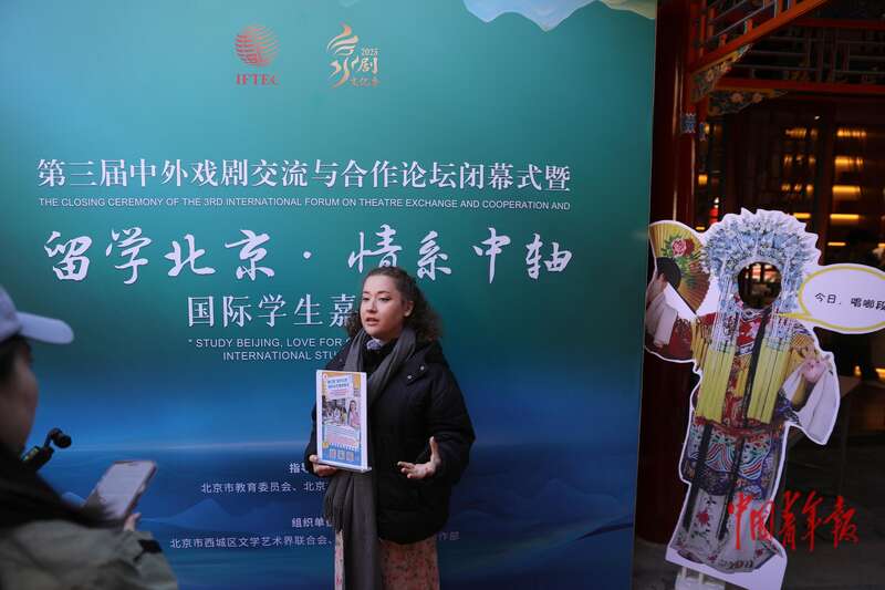 10月26日,北京正乙祠戏楼,来自土耳其的留学生乐琪接受采访。中青报·中青网记者 陈剑/摄