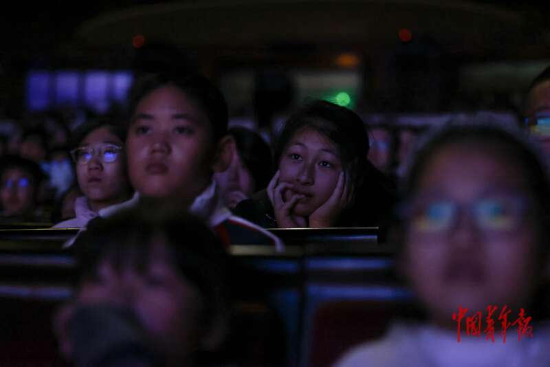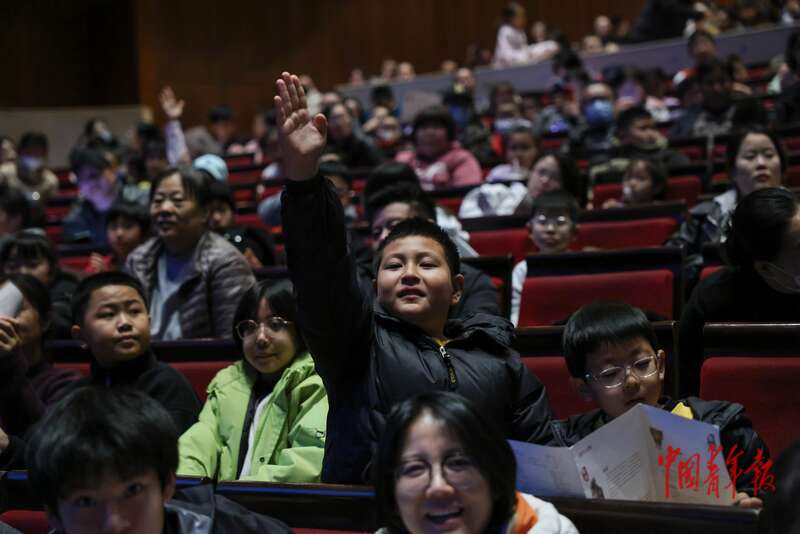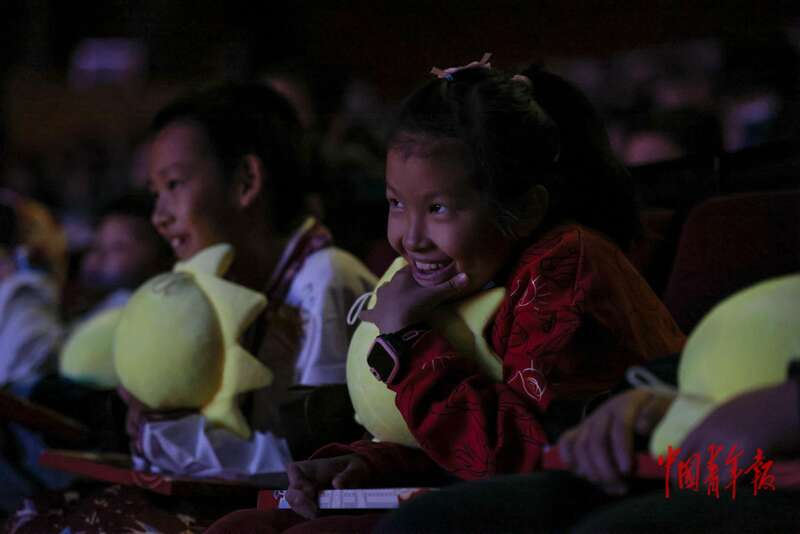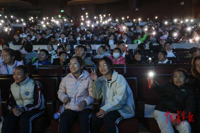 11月23日,北京华侨城大剧院,孩子们在观看演出。当日,500余名青少年共同观看了故宫大型沉浸式儿童音乐剧《甪端》,并参与了“文物小课堂”。音乐剧从少年儿童的视角出发,通过妙趣横生的故事内容、生动活泼的艺术形式展现了故宫的文物故事和中华民族的文化基因,让青少年在沉浸式体验中感受中华优秀传统文化的独特魅力。中青报·中青网记者 曲俊燕/摄