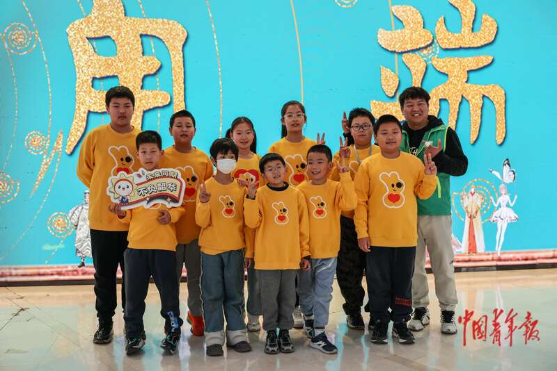 11月23日,北京华侨城大剧院,前来观看演出的孩子一起合影。中青报·中青网记者 曲俊燕/摄