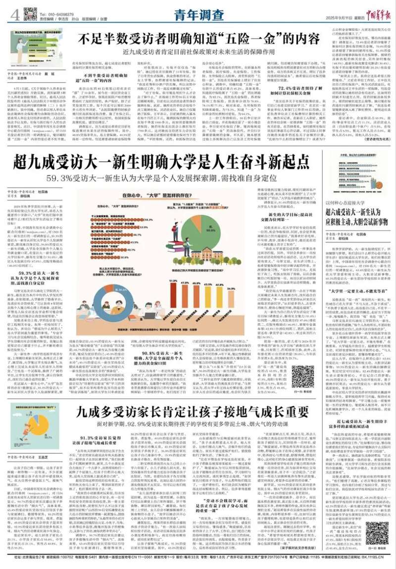 据中国青年报今日04版,上周,中国青年报社社会调查中心联合问卷网(wenjuan.com),对1500名大一新生进行的一项调查显示,59.3%的受访大一新生认识到大学是个人发展探索期,需找准自身定位。90.8%的受访大一新生明确,大学是全面提升个人能力的黄金窗口期。在受访大一新生设定的大学目标中,提高社交能力(51.0%)、确定人生发展方向(47.0%)、克服性格弱点(46.0%)位列前三。