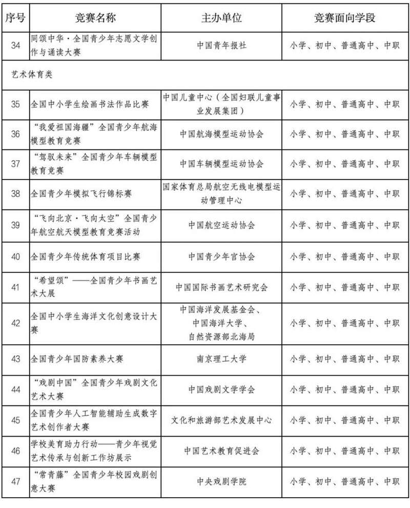 教育部公布2025—2028学年面向中小学生的全国性竞赛活动名单