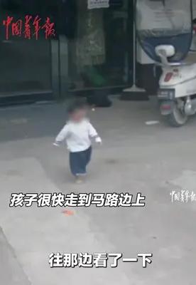 惊险!小孩挤开门口挡板往马路边跑去,妈妈看到后飞奔而出将孩子抱回