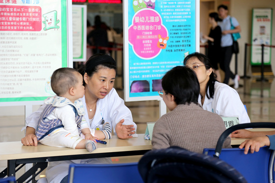 家长带着孩子现场咨询。(上海市第一妇婴保健院供图)