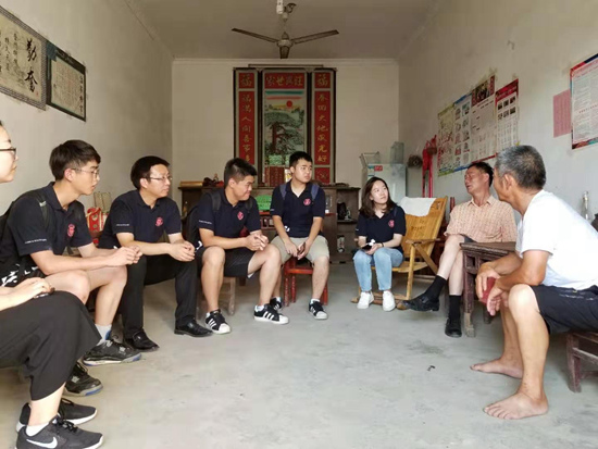 实践队成员与村民交流,普及法律常识。侯冰晨/摄