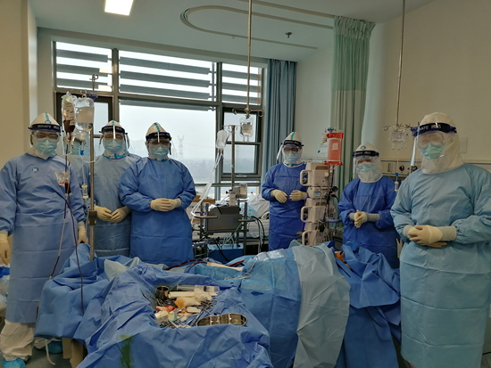2月1日,詹庆元和呼吸与危重症医学科及其相关科室的医生、呼吸治疗师、护士等一支完整的团队来到武汉。随后,中日医院的大量医用设备也驰援武汉,其中包括3台ECMO(体外膜肺氧合)等一批重要的监测和呼吸支持设备,总价值约1500万元。詹庆元的同事们开玩笑说:“把重型武器都搬过来了。”