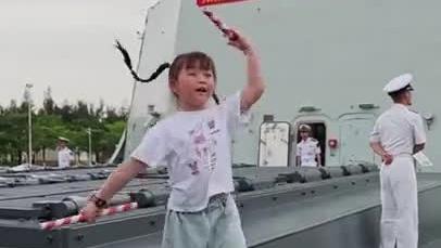 导弹护卫舰宜兴舰上,7岁女孩跳起英歌舞。