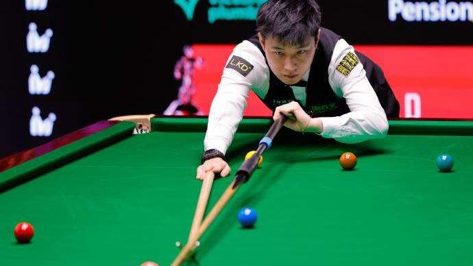 中国选手丁俊晖迎战同胞赵心童。比赛第一阶段双方4比4战平