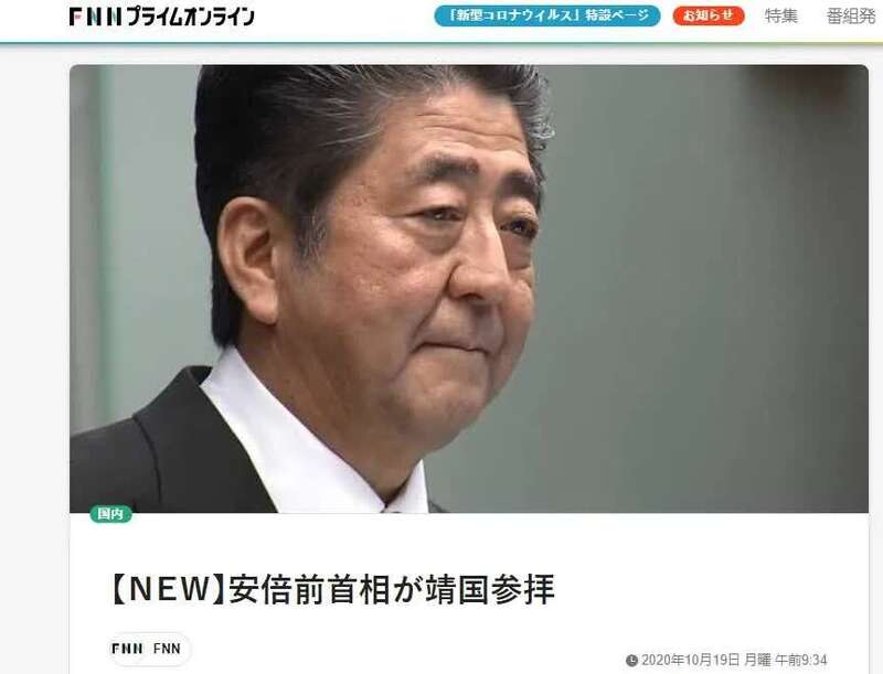 10月19日上午,日本前首相安倍晋三参拜靖国神社。参拜后,安倍晋三对记者说:“我此次参拜是为了表达对英灵的崇敬。”10月18日,就日本领导人向靖国神社供奉祭品一事,外交部发言人赵立坚表示,日方的消极举动再次反映了日方对待侵略历史的错误态度。中方敦促日方切实信守正视反省侵略历史的表态和承诺,以实际行动取信于亚洲邻国和国际社会。详情>>