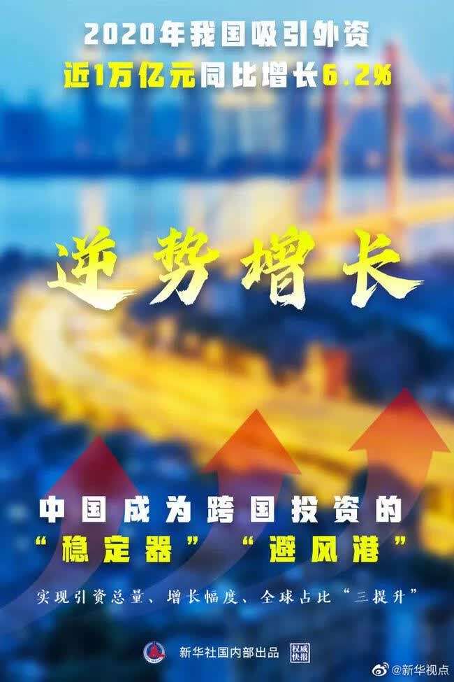 逆势创新高!2020我国吸收外资近1万亿元,同比增长6.2%