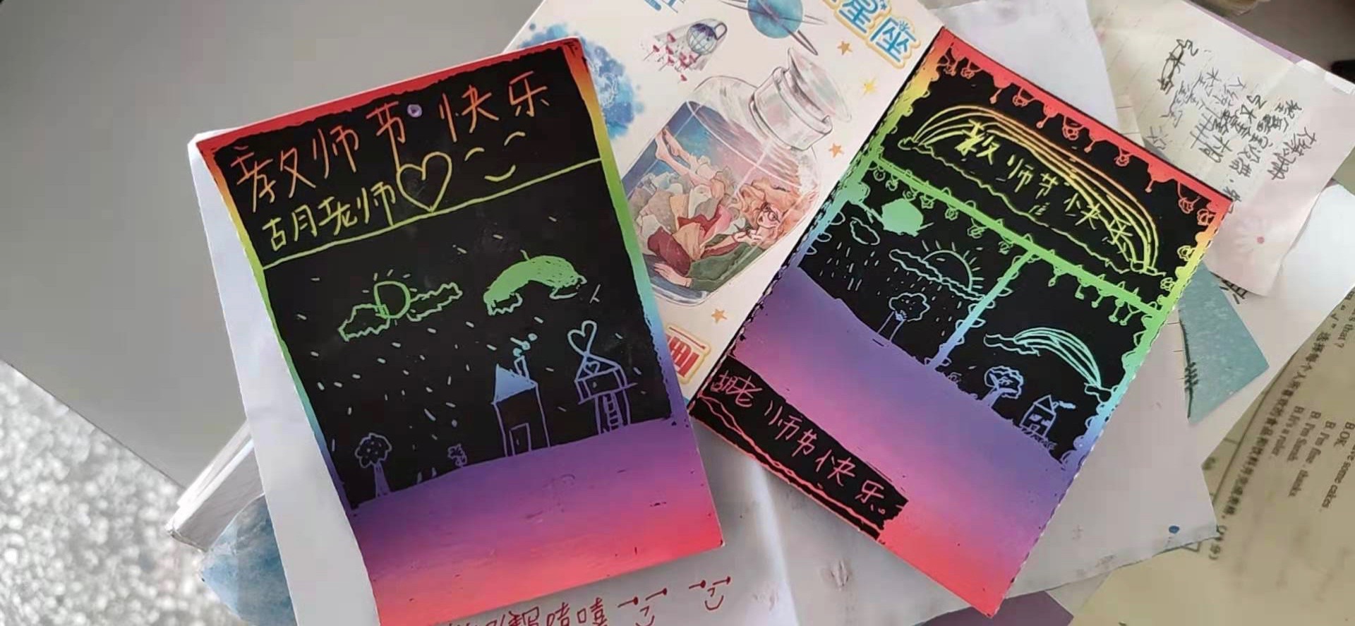 胡永超觉得,比起城市里的孩子,农村孩子更害羞。在厦门,他看到同事的孩子、来旅游的孩子面对陌生人毫不胆怯,喜欢聊动漫、游戏等话题。他的学生则不擅长表露情感,表达对老师的认可时,会写进日记本或者小卡片里。