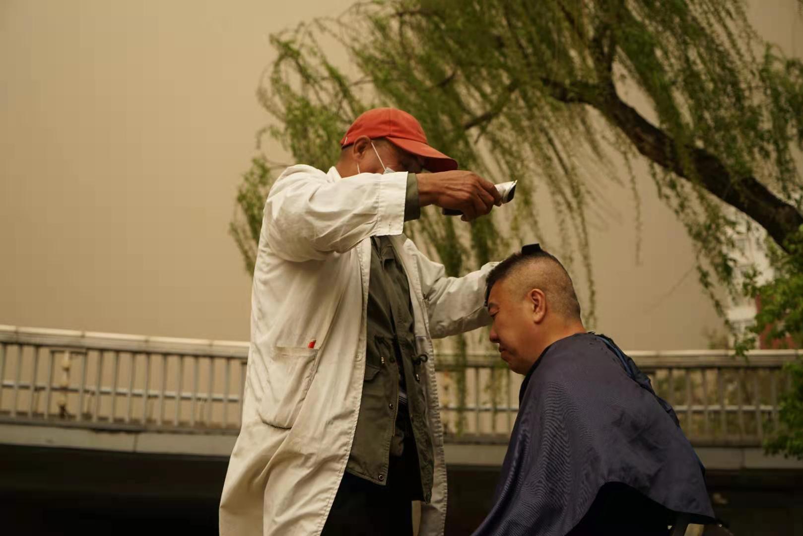 其实他的理发生意并不稳定,时常被保安和城管撵得到处挪摊子,有时还会被抢夺理发工具。