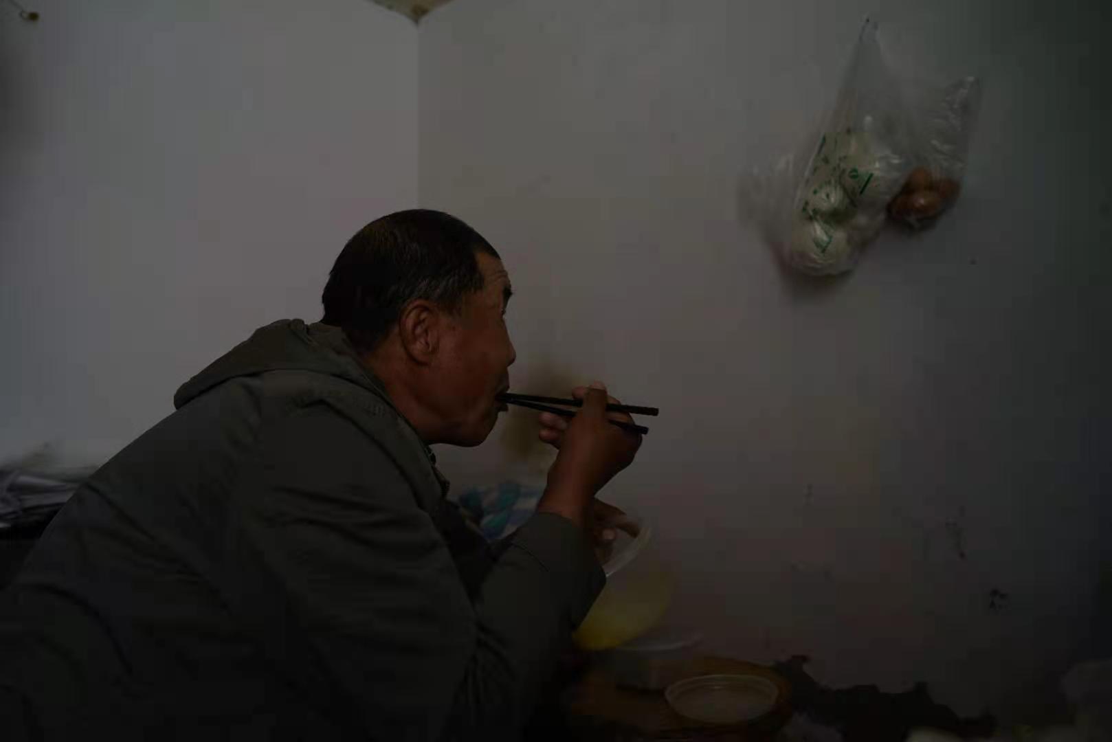 以前,干重体力活,他常能吃1斤猪头肉、10个馒头,但如今只能吃两个馒头。大概是咸菜吃久了,胃也今不如昔,出门时常抓一把花生米带上,没事嚼嚼,“养胃”。