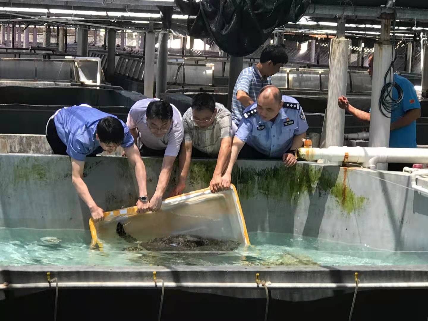 李自强解救这些涉案海龟后,把它们送到当地海洋馆里寄养,等待案件侦查、起诉、判决。