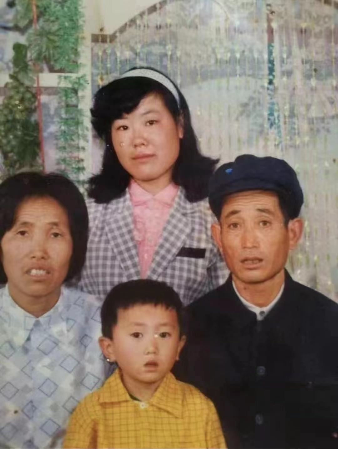 当年的全家福。前排左起为刘桂玲、赵连伟、赵计成,后排为房祥云。