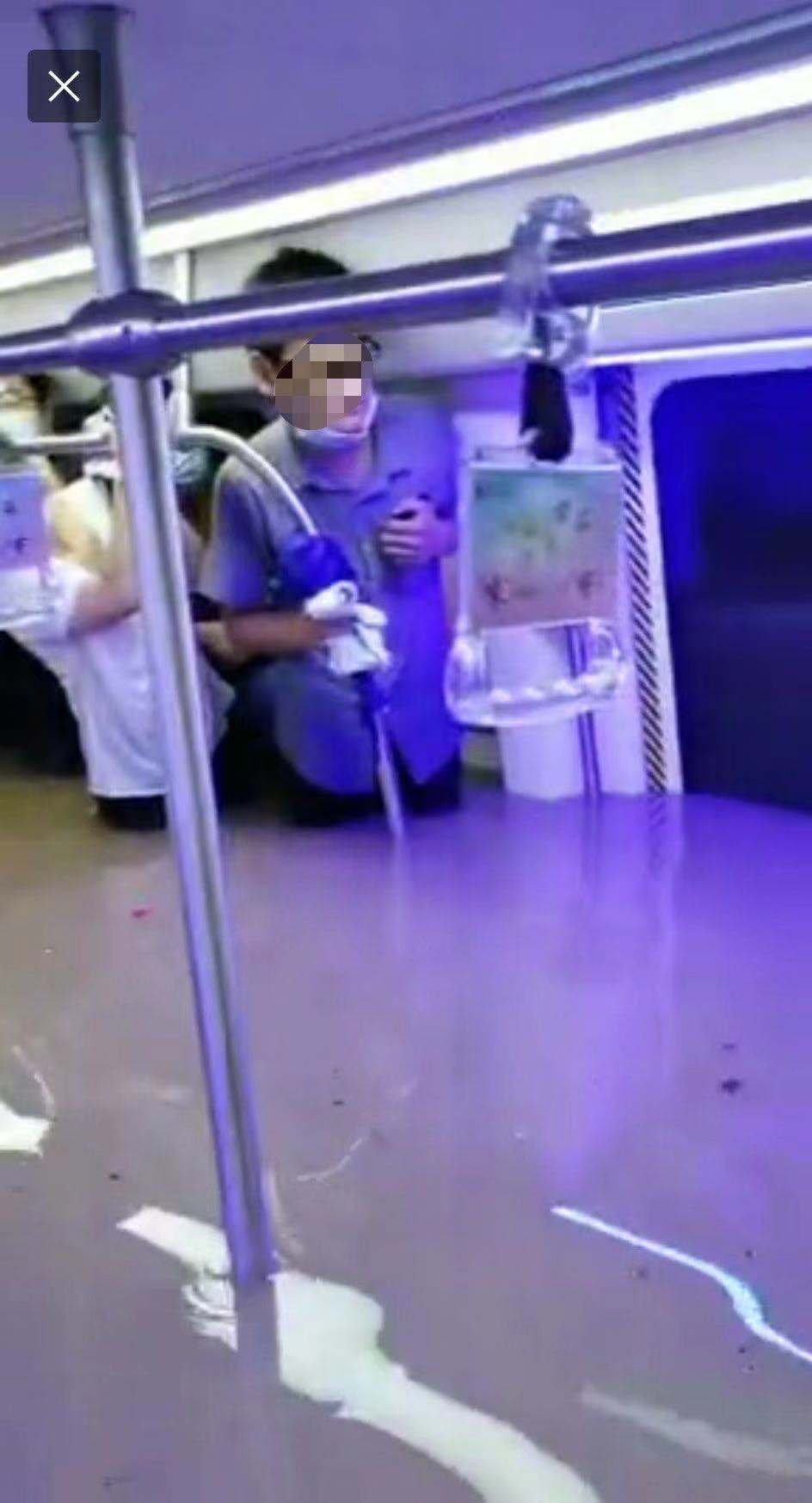 从车厢往外看,已经能看到两边的水急速地向上涌去。那个时候列车长从车厢的最前面走到了最后面,走动的过程中也看到他不停地在与地面进行联系。列车长还尝试着将列车重新开回海滩寺站。但当时可能是因为地铁有一套自动保护的设计,列车已经锁死在铁轨上面,没有办法移动。当时铁轨上溅起了火花。