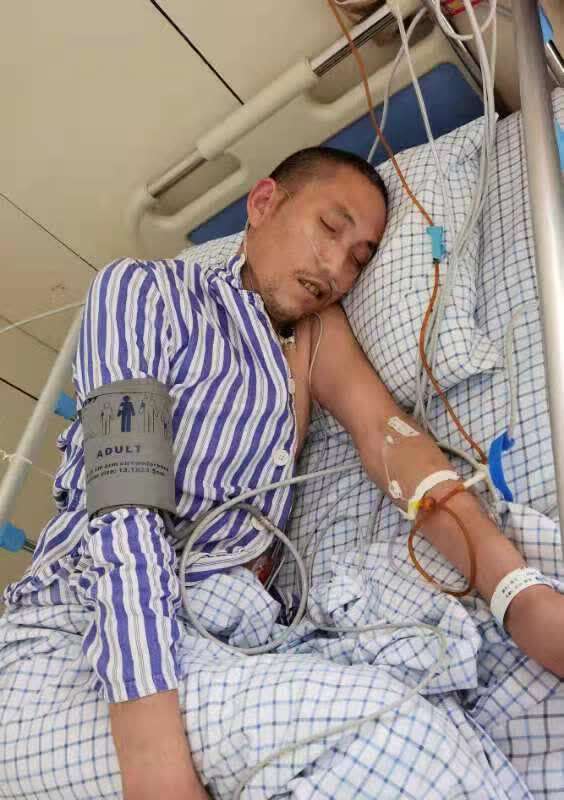 7月25日上午,在郑州市仁济医院北院区,获救后的桑兴正在输液。(受访者供图)