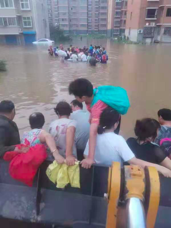 “因为天快黑了,水还在涨,当时现场比较慌乱。”孙兴坤说,救援队的登船点在一处高地上,人们站在齐腰深的水里或铲车上等待坐船转移,情绪激动,看到船就上。