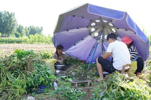 可心和白胖放暑假在家,加上老二媳妇,家中不缺劳动力。这几日,她每天早上5点出门下地,等到太阳晒得脖子微微发烫,孩子们就带着早饭,拖着一个户外遮阳伞出现在了她身边。