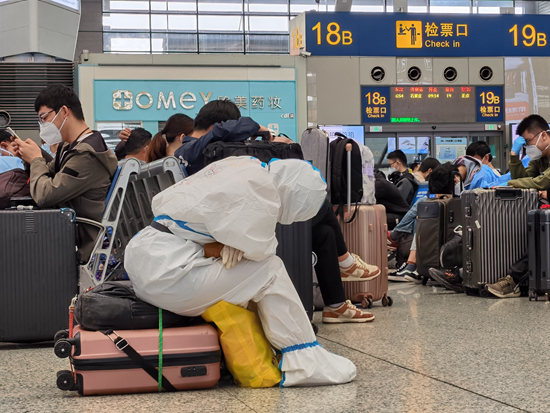 上海虹桥火车站为此专门开通了“离沪学生专用通道”,来自各个高校的大巴车可以在此停靠,学生从专用入口检票进站。张允妍和易嘉都觉得,排队进站的时间要比自己想象中快很多。