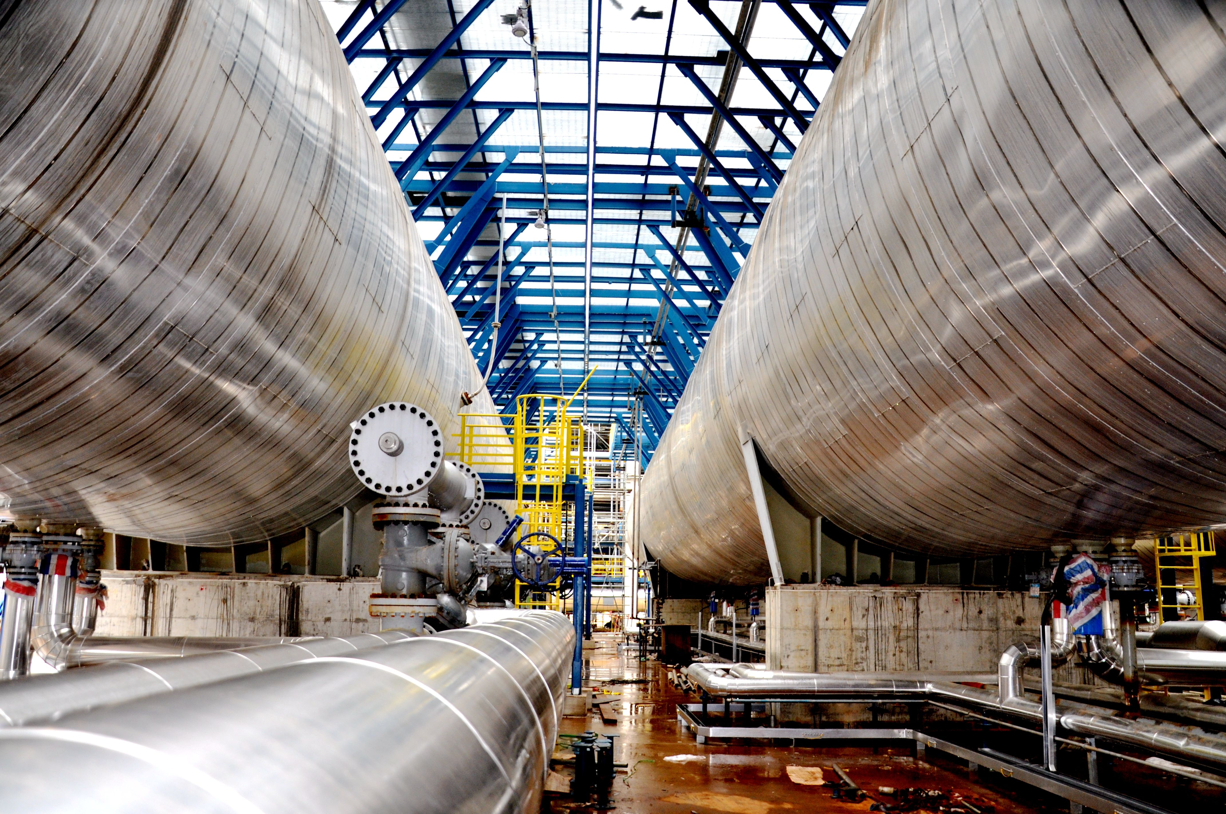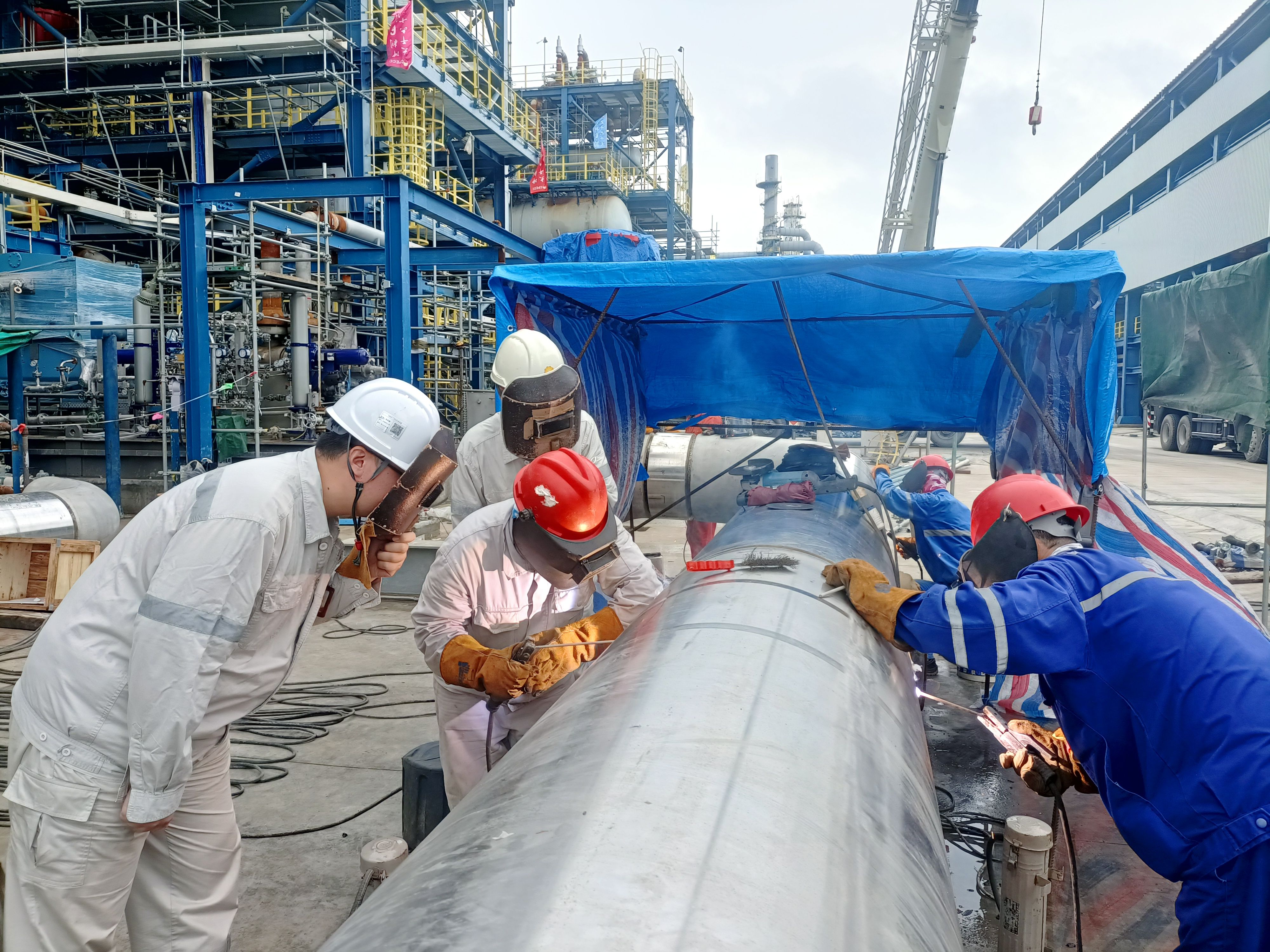 炼油区龙头装置1000万吨/年常减压蒸馏装置电脱盐罐,为国内同类最大单体设备。