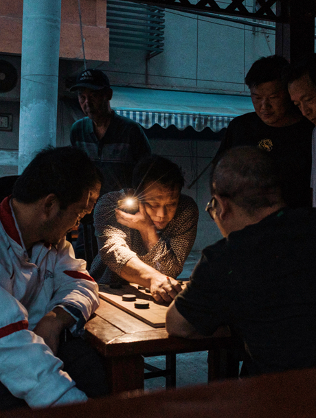 今年9月,湖北武汉。夜幕降临,小区里的邻居们就着手机电筒下象棋。对他们来说,象棋是童年时期取乐的玩具,也是现代生活中联结邻里关系的纽带。欧阳小洁/摄