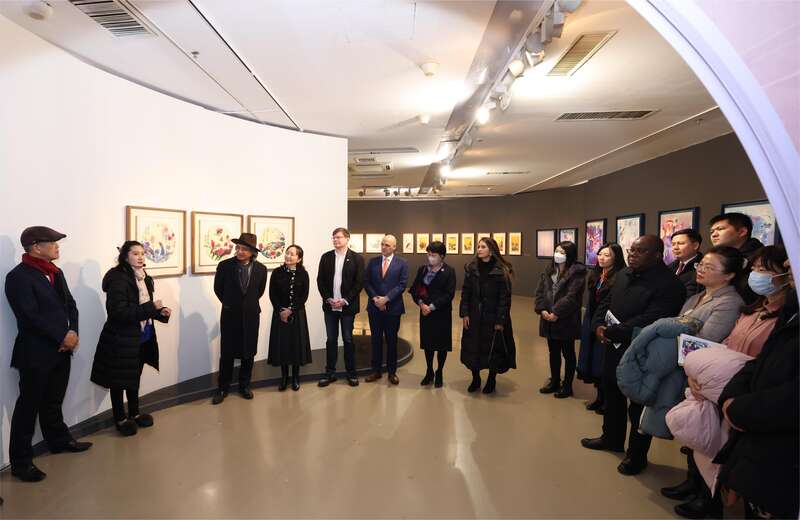 多国外交官参观“丝路青年文化使者”吴霜绘画作品展