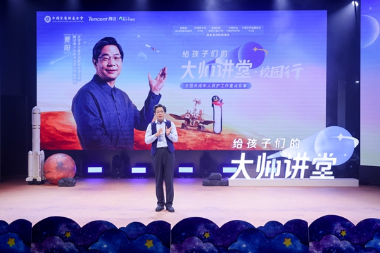 6月8日,中国宋庆龄基金会和腾讯推出的“大师讲堂·校园行”开启首站行动。月球及火星探测器副总设计师贾阳走进史家小学,与孩子们面对面交流火星探索,畅想航天未来。
