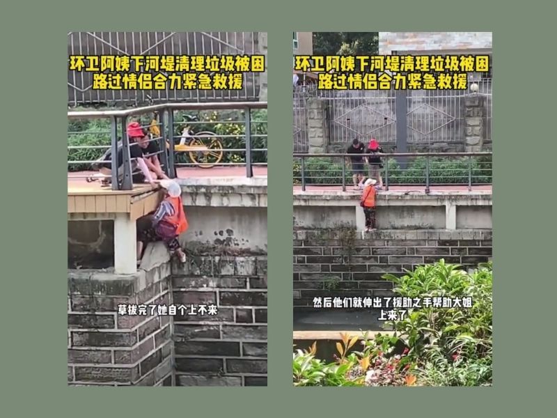 中国人的故事|环卫阿姨被困,路过情侣合力救援!