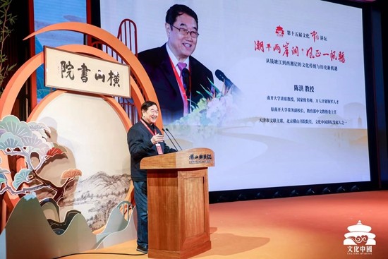 11月11日,第十五届文化中国讲坛在杭州市萧山区举办,南开大学讲席教授、文化中国讲坛发起人之一陈洪致开幕词。主办方供图