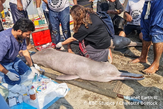 巴基斯坦的印度河拥有世界上最大的灌溉系统,当地人把河水引流,灌溉农田,这些河水的灌溉面积相当于整个英格兰的面积。但每年旱季,生活在印度河里的印河豚,经常被困在灌溉水渠里。