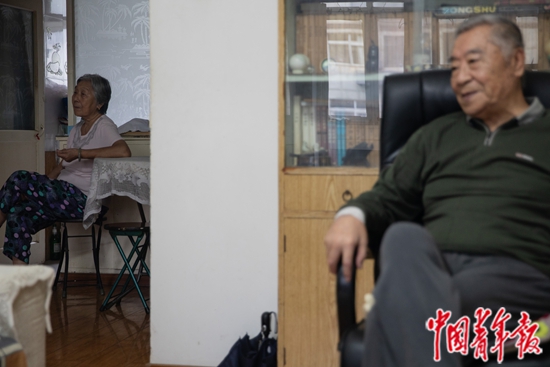 黄克骥老人接受采访时,爱人一直坐在客厅里旁听。郑萍萍/摄