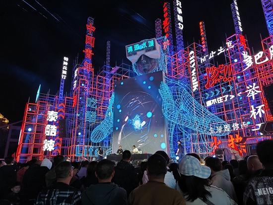 在清徐,不仅有传统的技艺,年轻人喜欢的潮流范儿也能在此觅得踪迹。清源水城古老的市楼边,建起了电音舞台,青春与古韵融合碰撞,大家在电音节的光影与声色中感受到赛博清徐的魅力。台下的老人、小孩、年轻人都随着音乐摇摆起舞,生活气息满满。河海大学的王成哲说:“在清源水城可以看到古建筑和赛博朋克风格的结合,非常吸引年轻人前来打卡。传统与现代的融合也让各个年龄段的人在清源水城找到了归属感。”