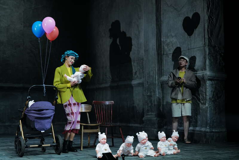 全剧接近尾声的一幕,舞台的一角摆了很多个小孩的玩偶,那是导演对于未来世界的渴望与想象。“我觉得《三姐妹》是一个科幻片,正是这种对于‘到不了的莫斯科’的渴望,对得不到的东西的永恒的向往,不断激励人们,让人类文明前行。”李瑜说。