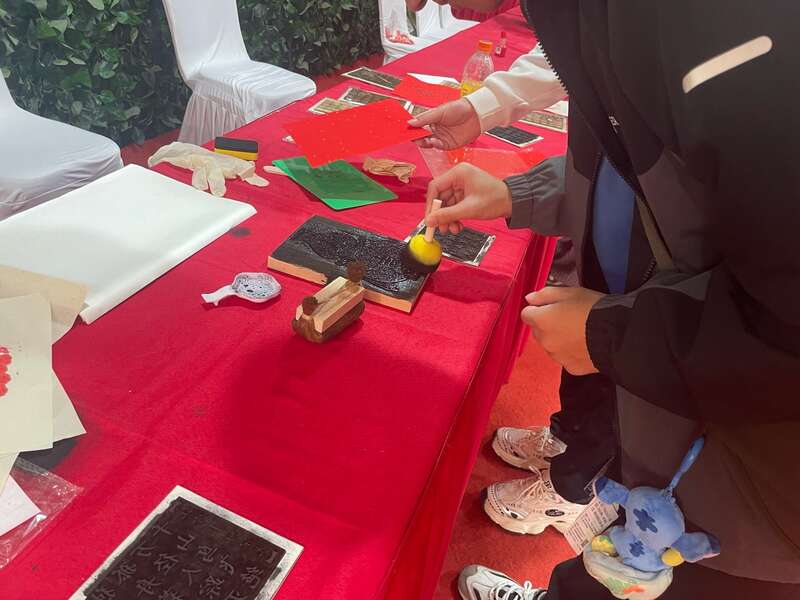 读者在活动现场体验雕版拓印。中青报·中青网记者 李丹萍/摄