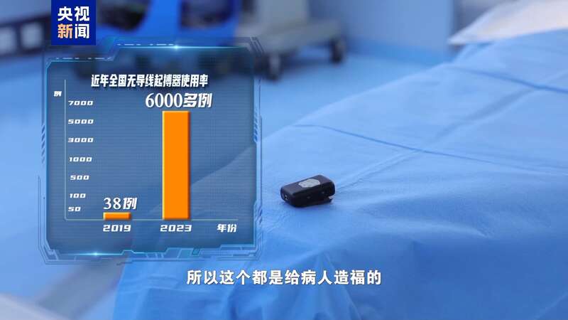 上海交通大学医学院附属瑞金医院心内科主任 吴立群:大概是2020年,上海的医保就被批准可以使用这款心脏起搏器了,2019年,大概全国只使用了38例,2023年是6000多例。所以这个是给病人造福的事情。