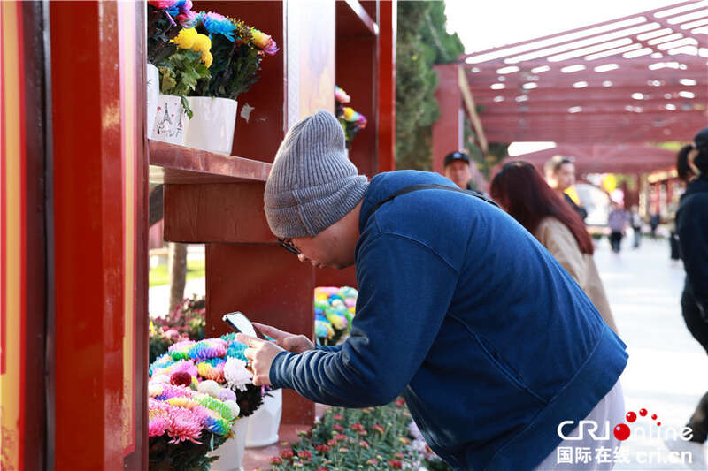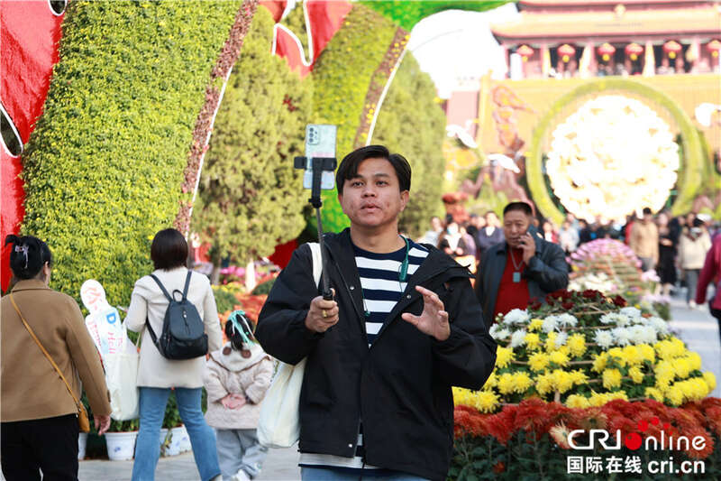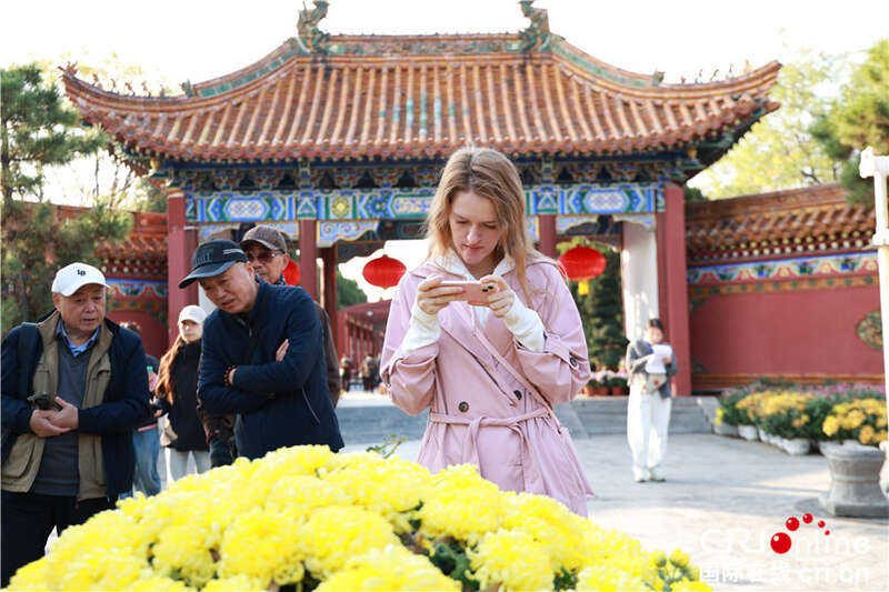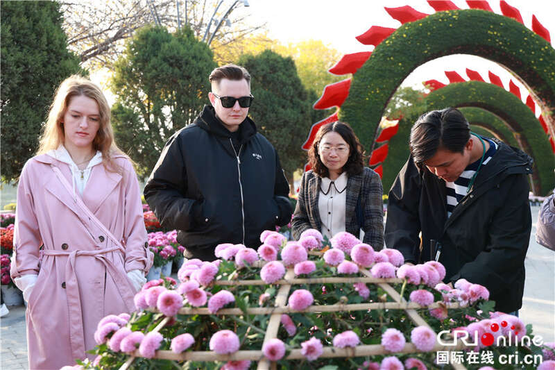 国际在线河南消息(记者 仝瑞勤):11月5日,在开封龙亭公园,来自德国、马来西亚、墨西哥、罗马尼亚、俄罗斯、泰国、越南等国家的10余名网红博主及总台捷克语鼹鼠工作室主播,沿着由各类各色菊花装扮而成的“花路”拾阶而上,身临其境漫游菊海,感受宋代宫廷文化。