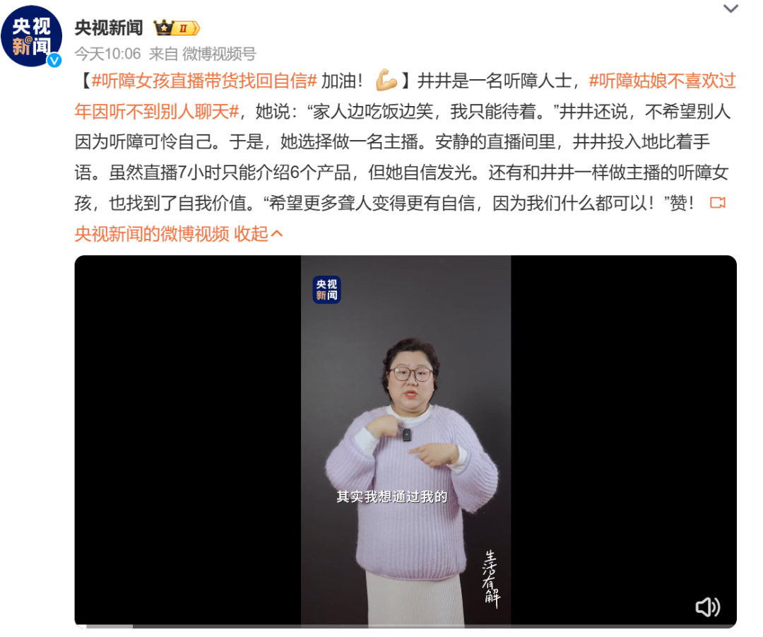 没有“321上链接”!听障女孩自信带货上热搜,更感人的是……