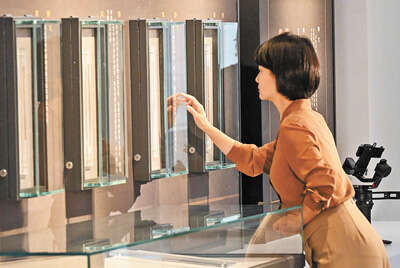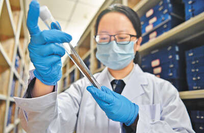 甘肃简牍博物馆的工作人员在文物库房内查看简牍保存情况。新华社记者 陈 斌摄