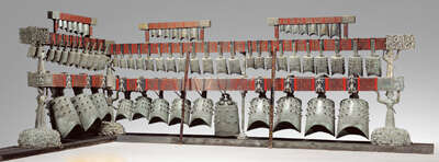 曾侯乙编钟。1978年出土于湖北随县(今随州市)曾侯乙墓,战国时期青铜乐器的巅峰之作,编钟的钟体、钟架和挂钟构件上共有3755字铭文,包含了丰富的乐律学知识。湖北省博物馆供图