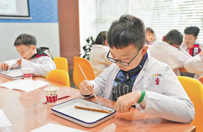 孩子们在湖南长沙简牍博物馆参与“探秘简牍的清洗与保护”活动。 新华社记者 薛宇舸摄