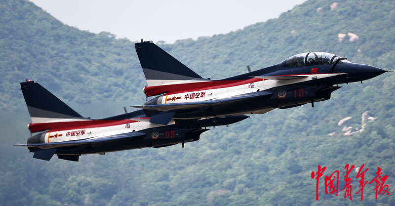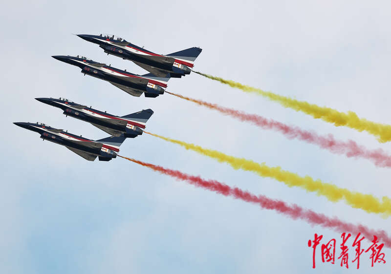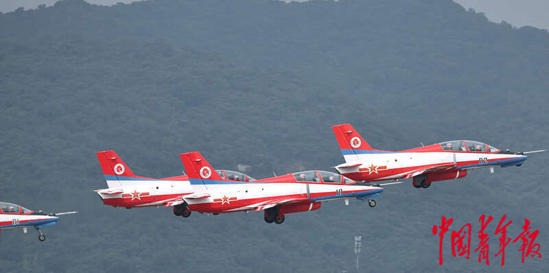 空军八一飞行表演队组建于1962年,时称“空军护航表演大队”,1987年8月1日正式启用“中国人民解放军空军八一飞行表演队”番号。此次是空军八一飞行表演队的第十一次中国航展之旅,也是换装歼-10C战机后首次亮相中国航展。空军航空大学“红鹰”飞行表演队组建于2011年8月,也曾多次参加中外飞行表演。当日,两支飞行表演队现场上演了六机菱形编队俯冲、对冲、双机绕轴滚转等多种新颖的特技动作。刘占崑/摄