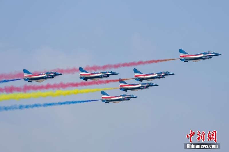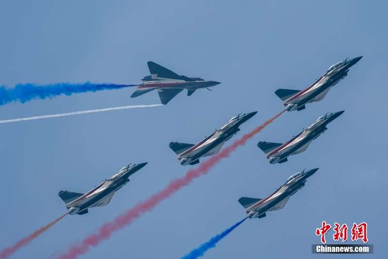 11月12日,中国空军“八一”飞行表演队在第十五届中国航展上进行飞行表演。当日,第十五届中国国际航空航天博览会在珠海国际航展中心开幕。