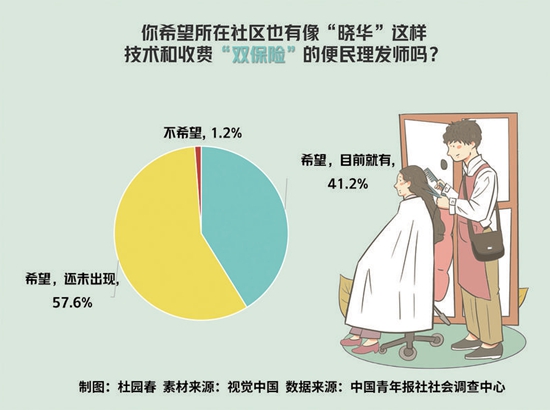 调查显示,98.9%的受访者希望所在的社区有像“晓华”这样技术和收费“双保险”的便民理发师,其中41.2%的受访者表示目前就有。