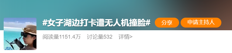 #女子湖边打卡遭无人机撞脸#