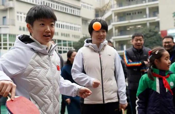 孙颖莎和成都“小孩姐”“小孩哥”PK乒乓球